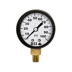 Boshart Industries PG-100NL Dry Pressure Gauge, 0 to 100 psi, 1/4 in Connection, 2 in Dia Dial, 3%-2%-3% Grade B Accuracy, 1 psi Graduation, Black
