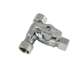 LynCar 1650338LF Add-A-Stop Tee Stop Retrofit Valve, 3/8 x 1/4 in, Female Compression x OD Compression, Brass Body, Chrome Plated