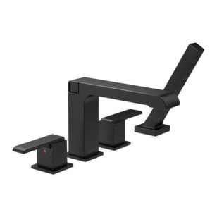 Delta® T4767-BL Ara Roman Tub Trim With Hand Shower, 1.75 gpm, 10 to 16 in Center, Matte Black, 2 Handles, Trim Only