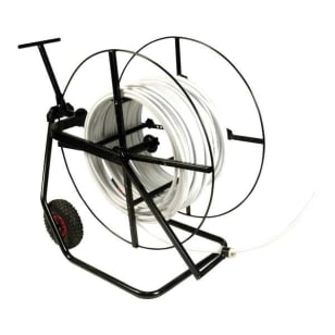 The durable wheels make for easy portability, and the uncoiler is equipped with a tubing-feed eyelet