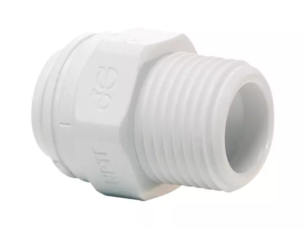 John Guest® PP010821W-US Straight Male Connector, 1/4 x 1/8 in, Tube x NPTF, Polypropylene