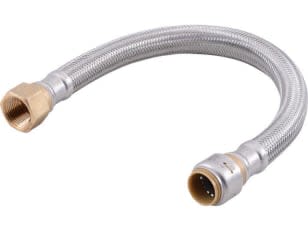 SharkBite Max™ UR3588FX18CA Braided Flexible Connector Hose, 3/4 in, Push-Fit x FNPT, 18 in L, 200 psi Working, Stainless Steel/EPDM