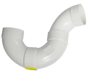 Installed in an PVC white sewer pipe system beneath a floor drain. The U-Bend is connected to the drain using an sewer pipe sized to match the drain Hub. The 90 Degree part of the assembly is then cemented to the U-Bend and directed toward the rest of the PVC white sewer drainage line.